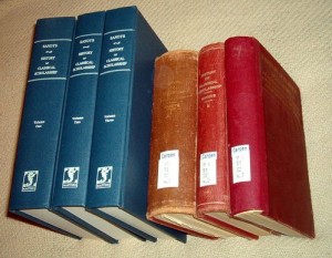 This is what I asked of my parents for Christmas this year: a facsimile edition of John Edwin Sandys’s A History of Classical Scholarship. I opted for the facsimile because it’s printed on better paper and is more durably bound. This set was done by Martino Publishing in partnership with Krown and Spellman, booksellers. Krown & Spellman sell it for $165 + $5 per book shipping USPS. The edition which Martino offers on their site, apparently not in connection with Krown & Spellman, is listed at $195.