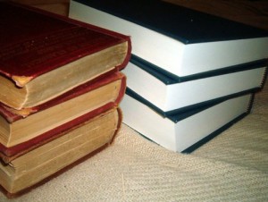LEFT: My brand spanking new copy. RIGHT: the library’s old copy, which is yellowed and falling apart.