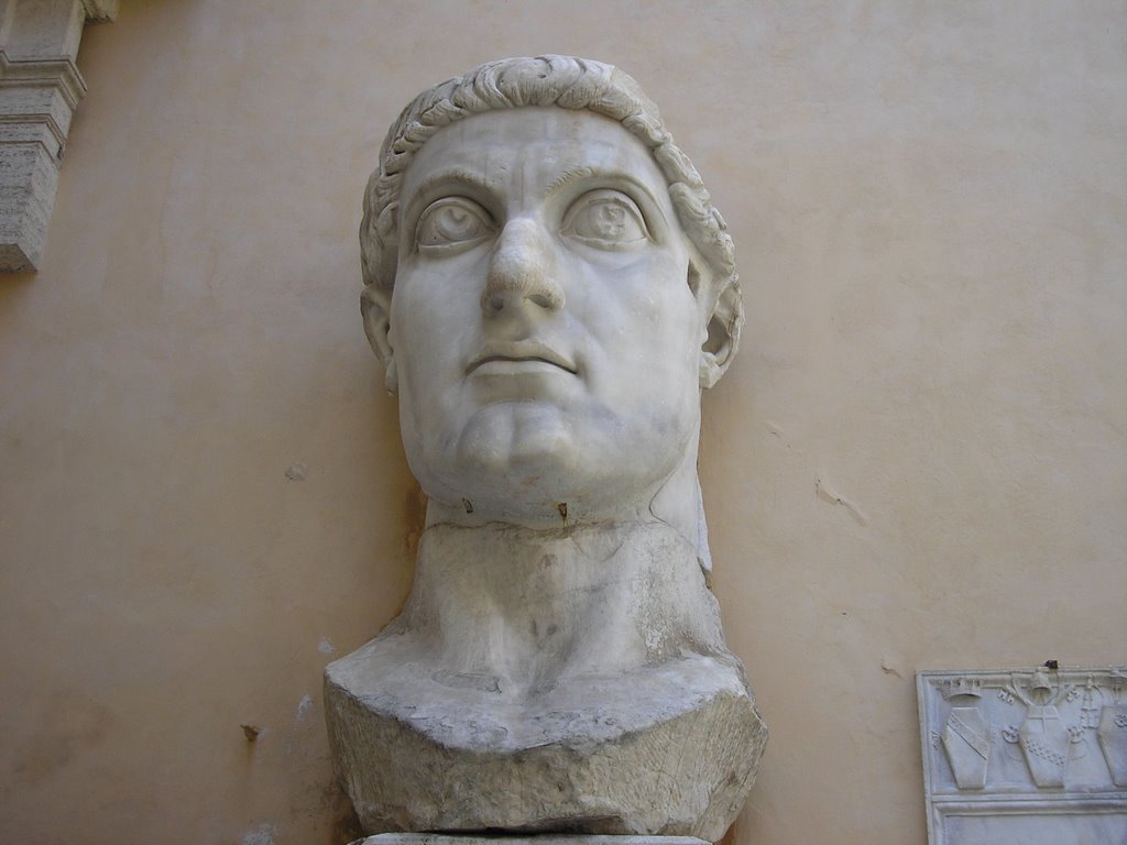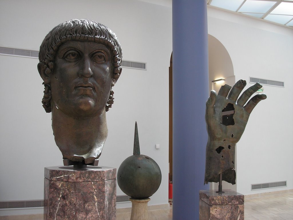 Last week was ‘culture week’ in Italy, so a lot of museums and sites were free. I tried to take advantage and save some euros and grabbed a bunch of photos along the way, and thought I’d post some that ancient enthusiasts might enjoy. Since Dennis remarked on the apparent popularity of Constantine, I decided to post a couple colossals of the big C from the Capitoline Museums. First, the head from the giant statue originally in the apse of the Basilica Nova: