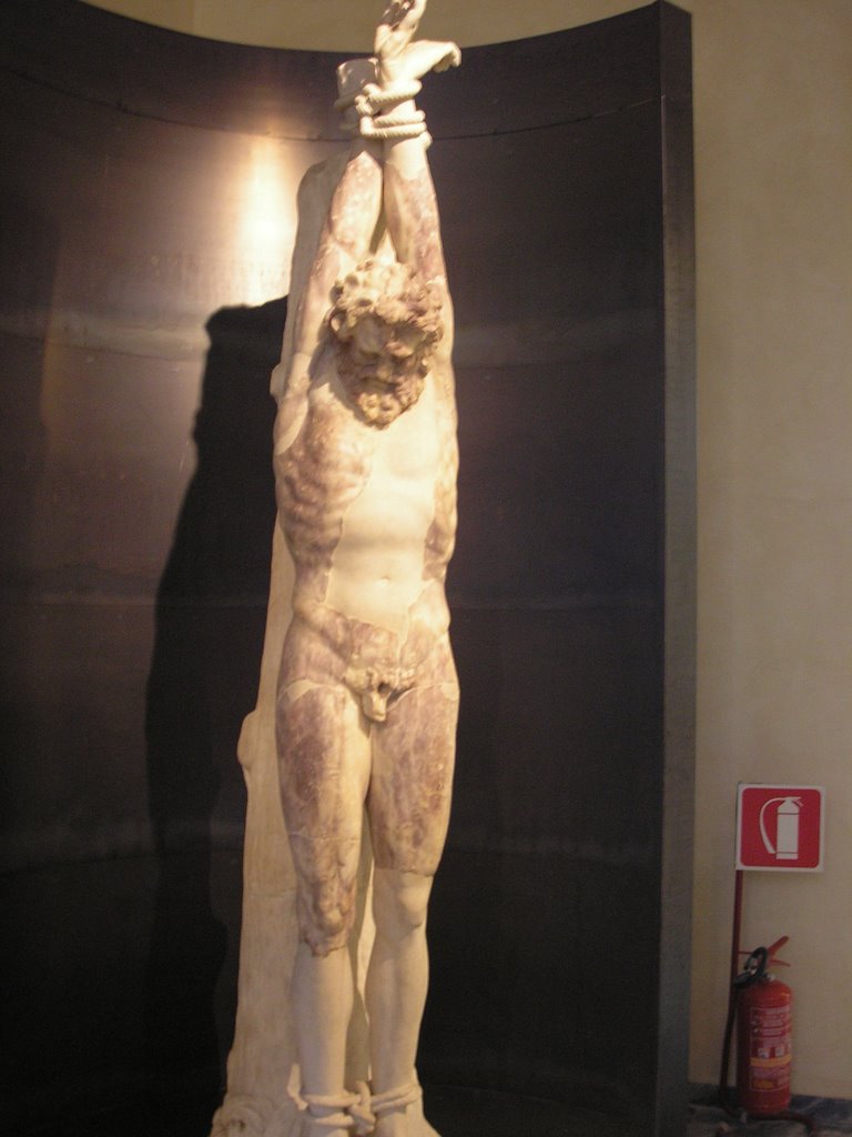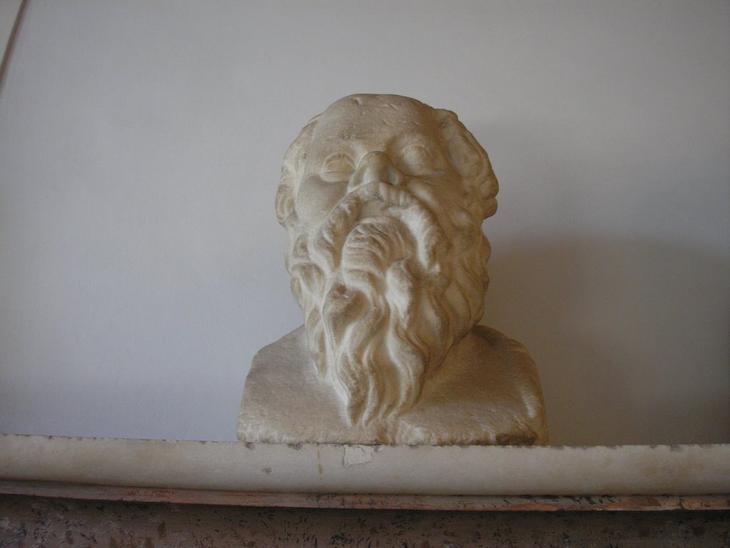 While at the Capitoline the other day, I got pictures of a sculpture of the flaying of Maryas and another of Socrates’ head. Take a look at them and compare (sorry, I know the face of Marsyas is difficult to see at that angle). Is Alcibiades right? Does Socrates look like a satyr? Or is he telling a fib?